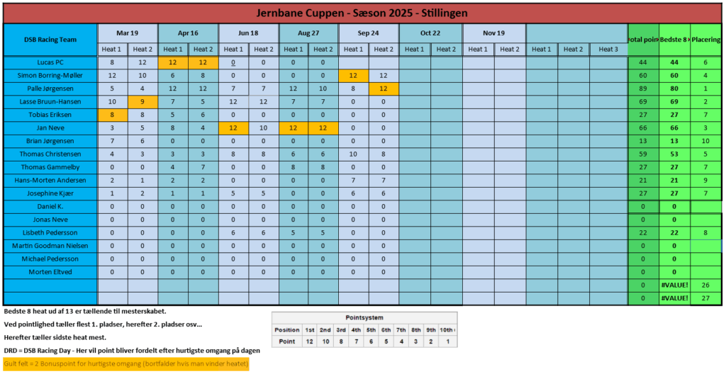 Jernbane Cuppens Afd. 5 By admin | september 25, 2025 0 Comment Jernbane Cuppen blev afviklet onsdag den 24. September 2025 hos Roskilde Racing Center. Heat 1 Heat 2 Stillingen